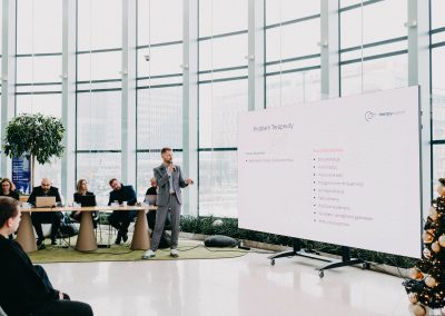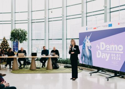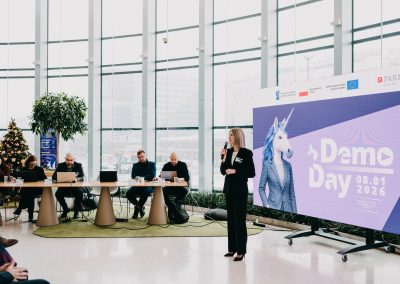 Podczas Demo Day startupy zaprezentowały efekty procesu inkubacji — swoje produkty, modele biznesowe oraz wizje dalszego rozwoju. Każdy pitch był potwierdzeniem ogromnego zaangażowania zespołów i potencjału projektów, które wchodzą w kolejne etapy budowania biznesu.