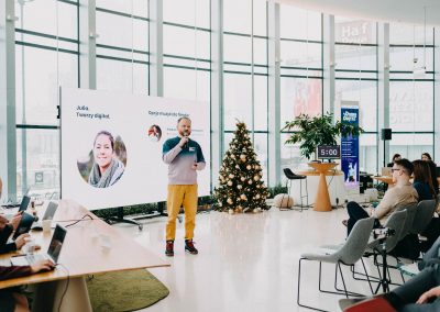 Demo Day to jednak nie tylko prezentacje — to także przestrzeń do inspirujących rozmów, wymiany doświadczeń i budowania relacji opartych na współpracy oraz wzajemnym wsparciu.