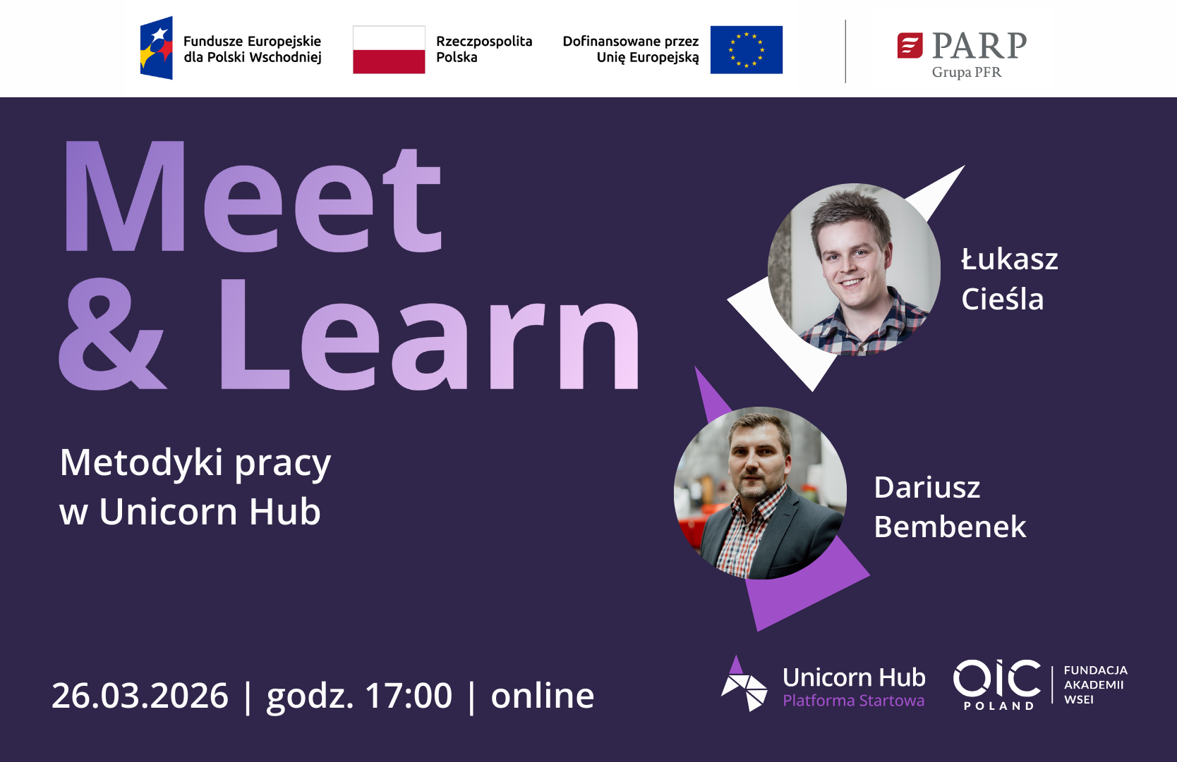 Warsztat poprowadzą doświadczeni praktycy – Łukasz Cieśla oraz Dariusz Bembenek – którzy zaprezentują konkretne narzędzia wykorzystywane w procesie inkubacji na naszej platformie. Uczestnicy poznają sprawdzone techniki pracy z zespołem, walidacji pomysłów oraz planowania dalszego rozwoju projektu.